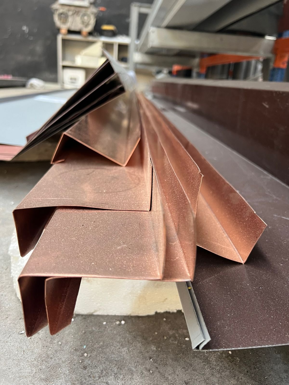 Caleiras alumínio lacado, zinco e cobre – Soluções de drenagem duráveis, estéticas e resistentes.